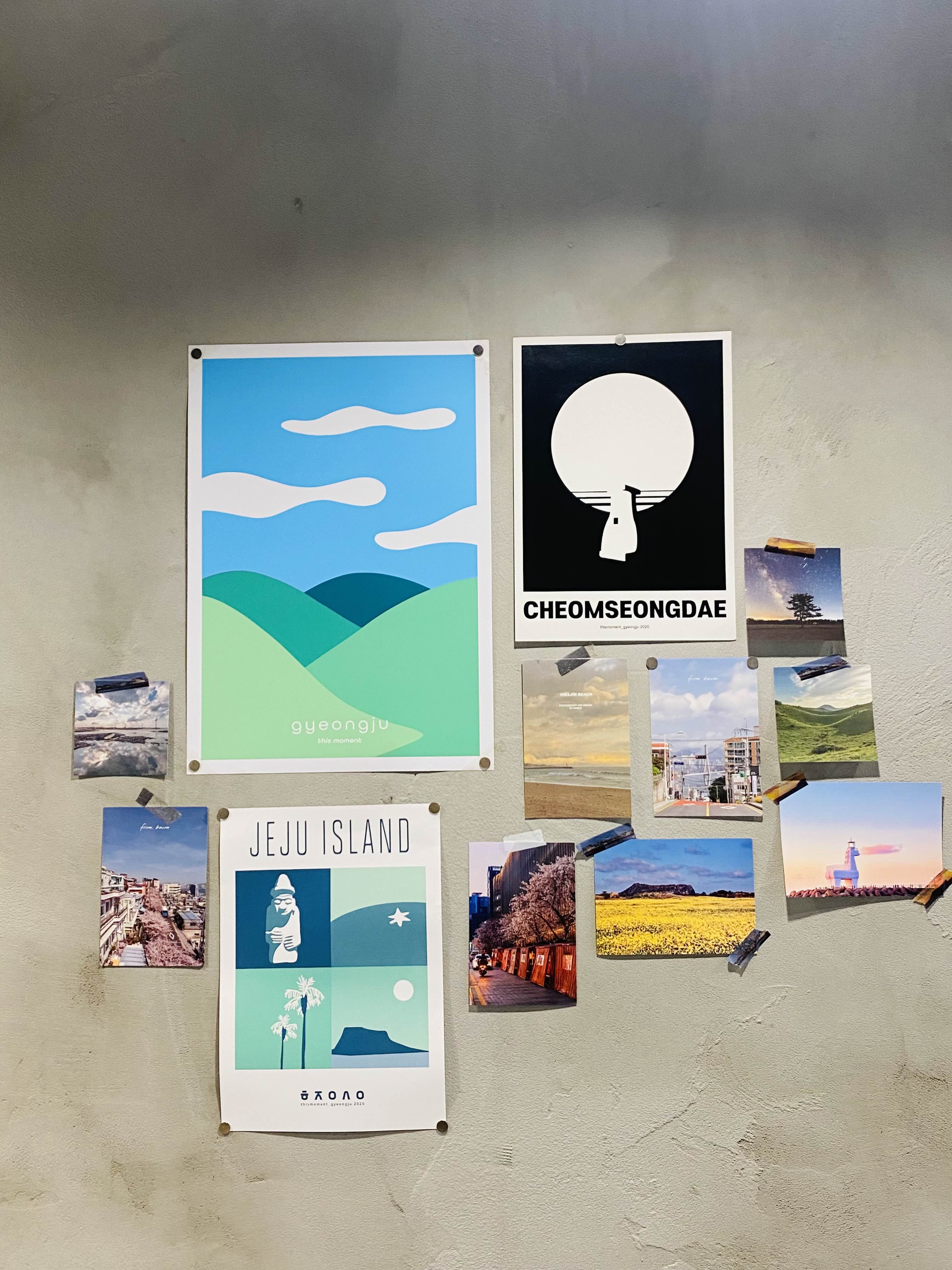 벽에 붙어있는 사진도 감성적이네요.