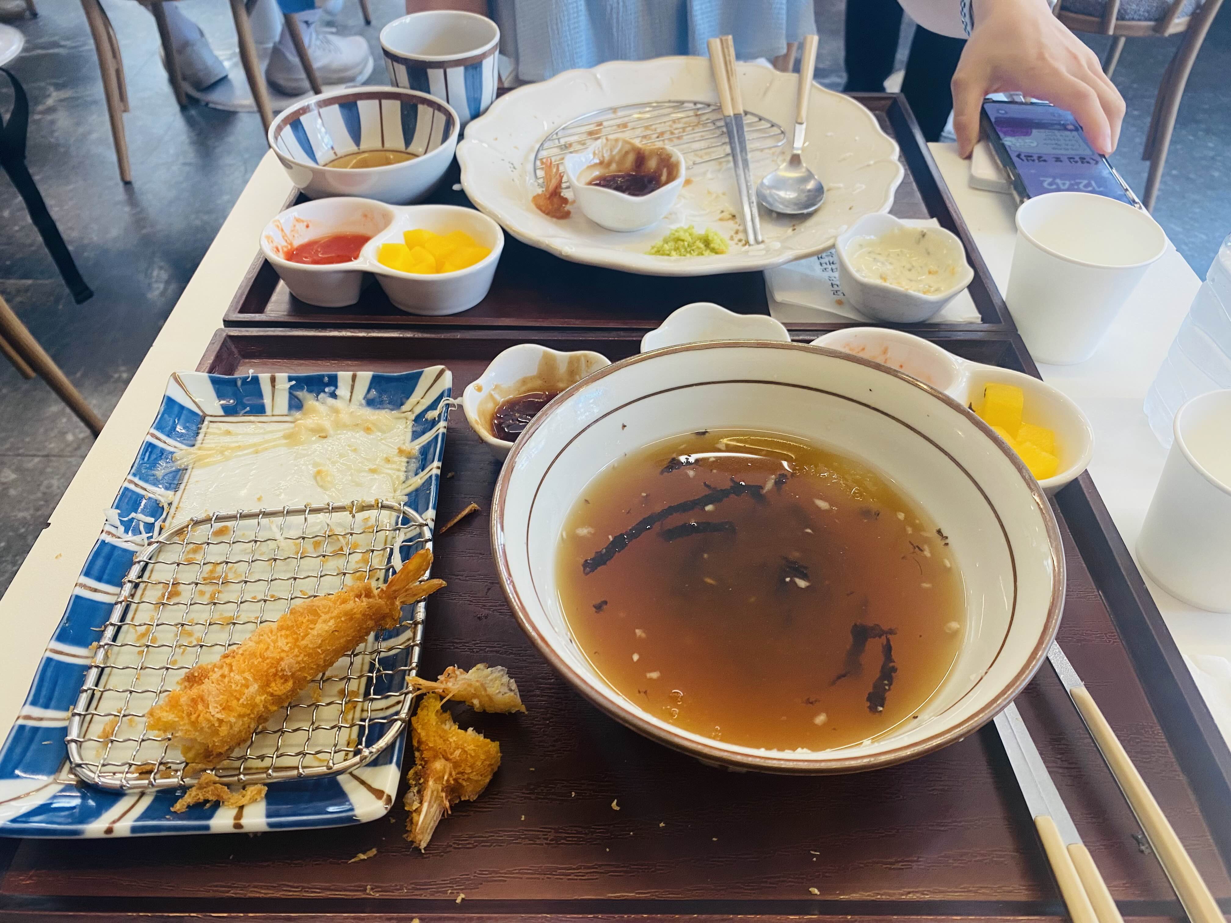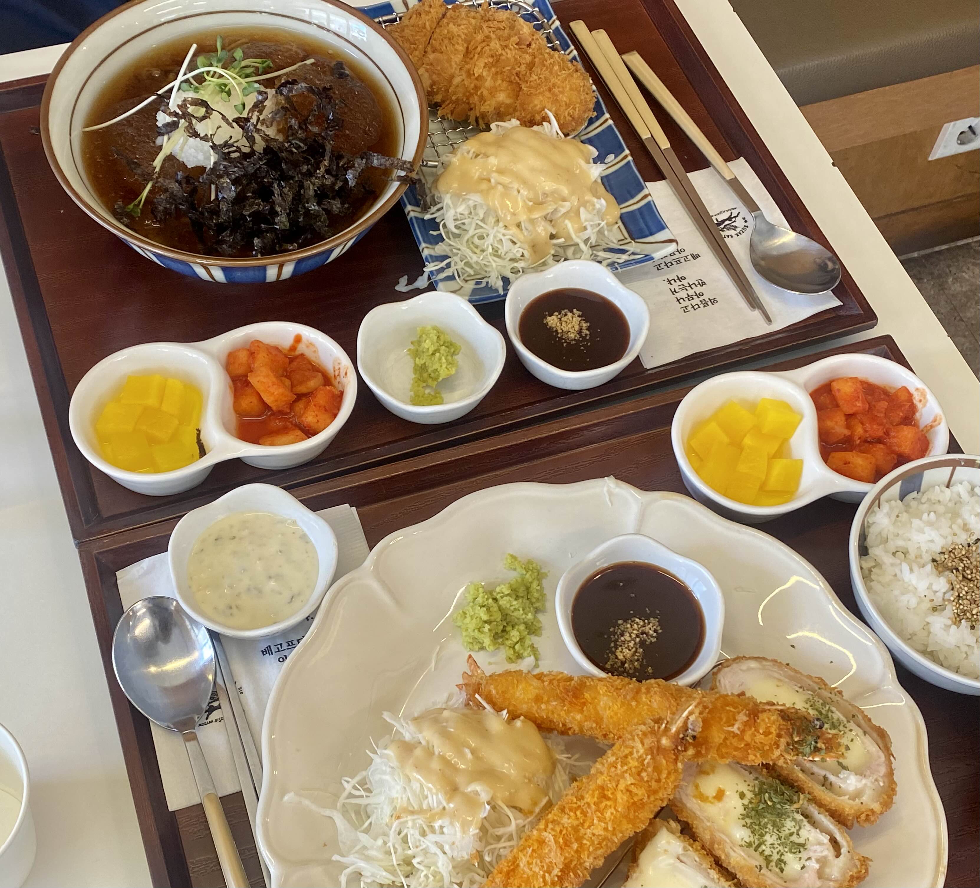 모짜치즈카츠는 새우튀김 2개와 함께 주문했어요. 치즈가 부드럽게 녹아서 맛있더라구요. 새우튀김도 두툼하고 타르타르소스도 줘요.