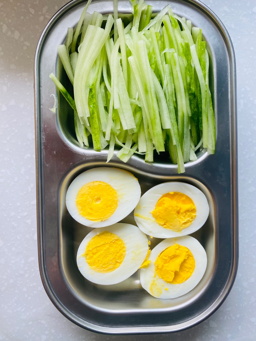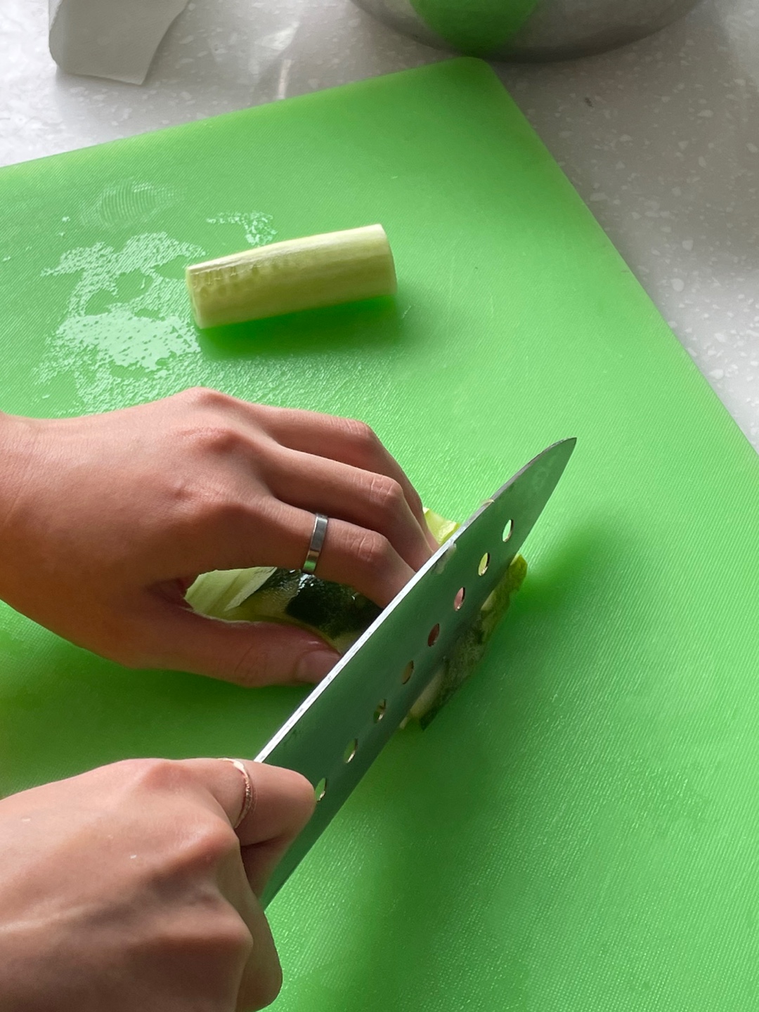 냉면에 올라갈 고명으로 오이를 채썰었어요