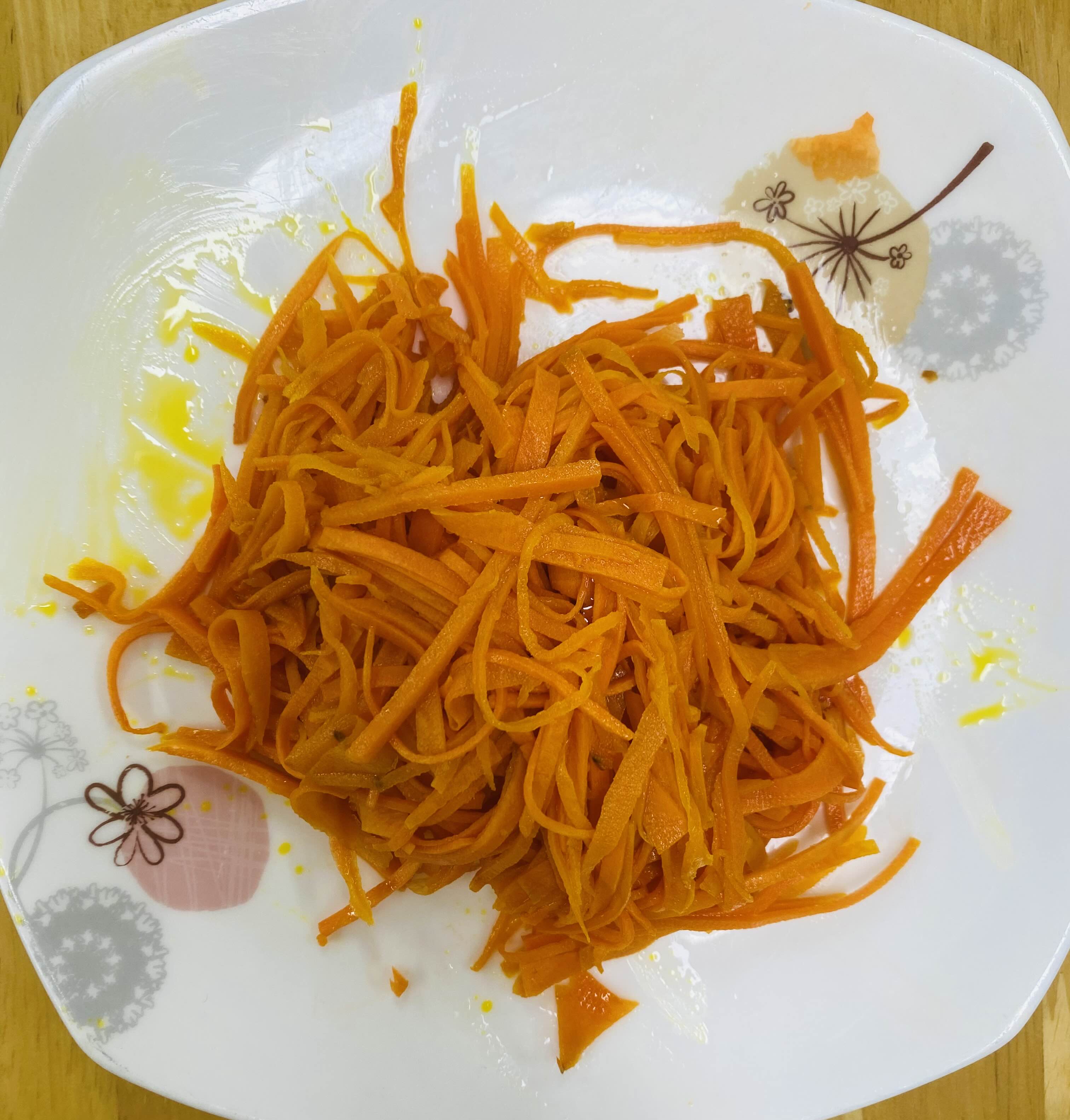 당근은 많이 들어가면 맛있더라구요. 당근채를 썰고 기름에 볶아줬어요.