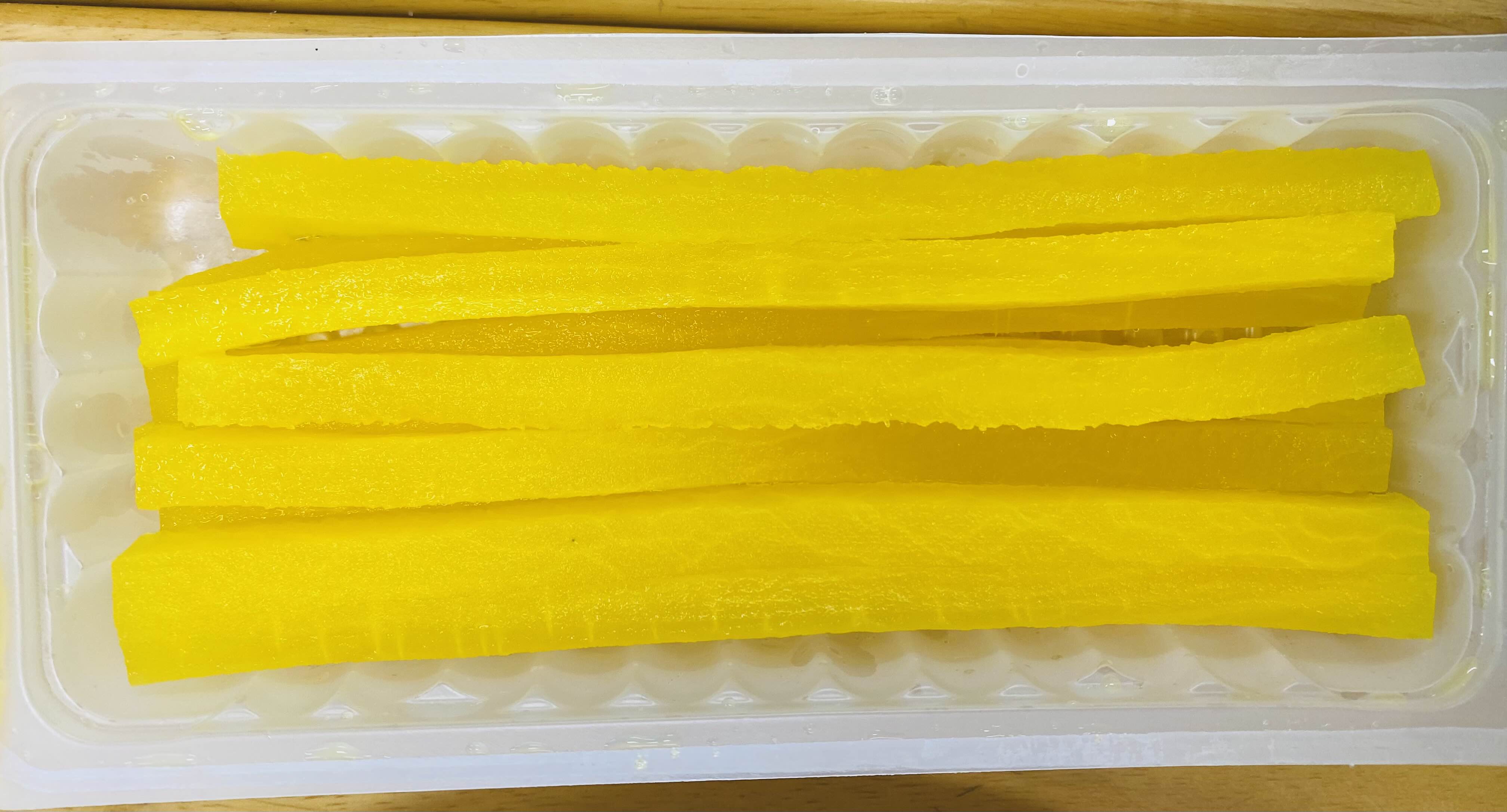 오이는 길쭉하게 썰어서 소금을 뿌려 물기를 뺐어요.